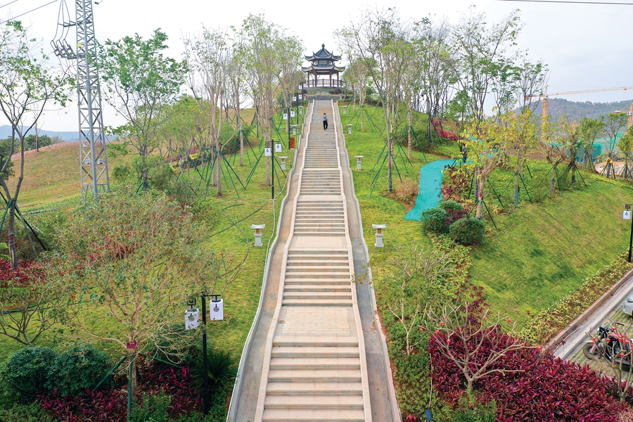 除了社溪河两岸,榴岭公园这个“大绿块”和沿着主干道、支路网的一条条“绿飘带”也很醒目。“起步区以生态为底,因此我们充分利用各种方式,打造花园式园区。”潼湖生态智慧区城建生态办负责人告诉记者,“榴岭公园紧邻规划市政道路,未来可为整个园区生活人群提供休闲场所。接下来将继续加快推进起步区的景观打造、风貌改造和功能提升,建设高质量的绿化广场、休闲公园等,提升群众幸福感。”