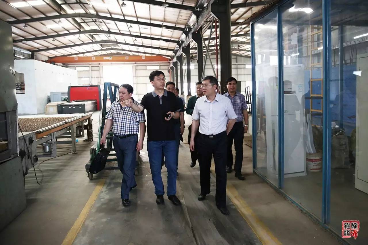 俞志锋一行随后到东莞艺华弧形钢化玻璃有限公司参观考察,深入该企业厂房及生产线,了解企业产品和生产经营情况,与企业负责人座谈,研究解决该企业连平项目建设过程中遇到的问题。