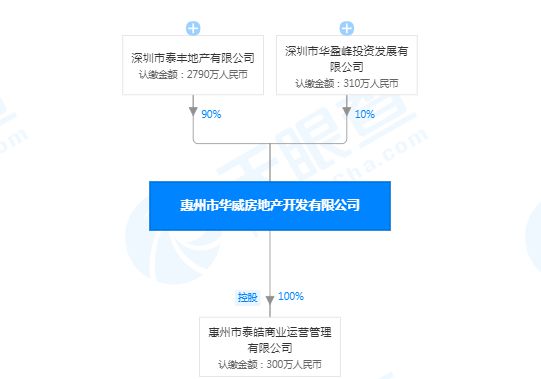据天眼查查询,惠州市华威房地产开发有限公司为深圳市泰丰地产有限公司旗下子公司。