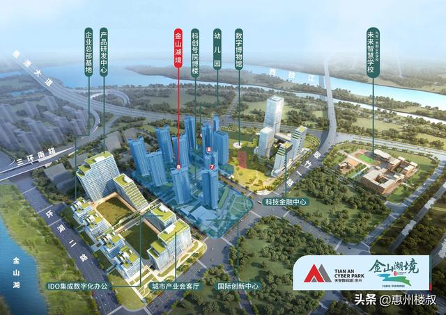 然而,金山新城并非是纯粹的住宅区,作为惠州未来城市中心,近年来更是布局了多个高新技术产业园,例如