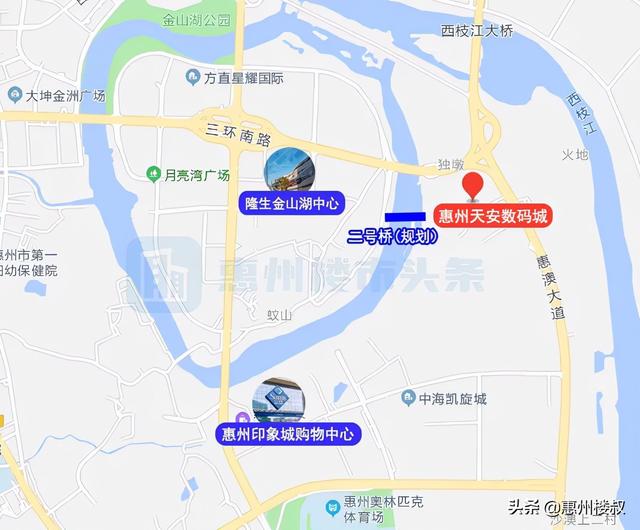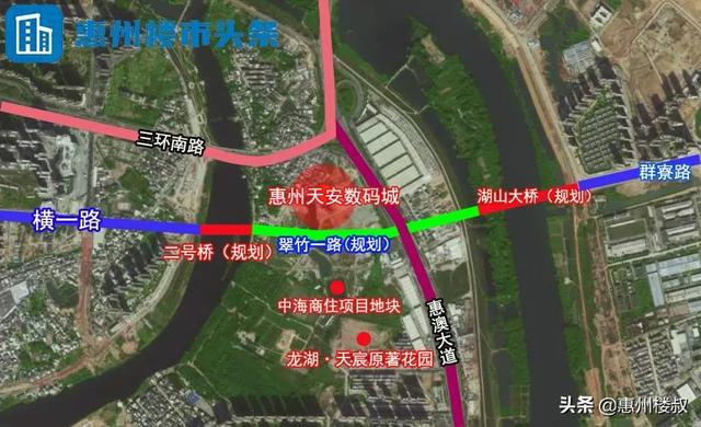 因此,规划中的翠竹一路会把金山湖二号桥与湖山大桥串联,将惠州天安数码城和周边区域更便捷的连接起来。