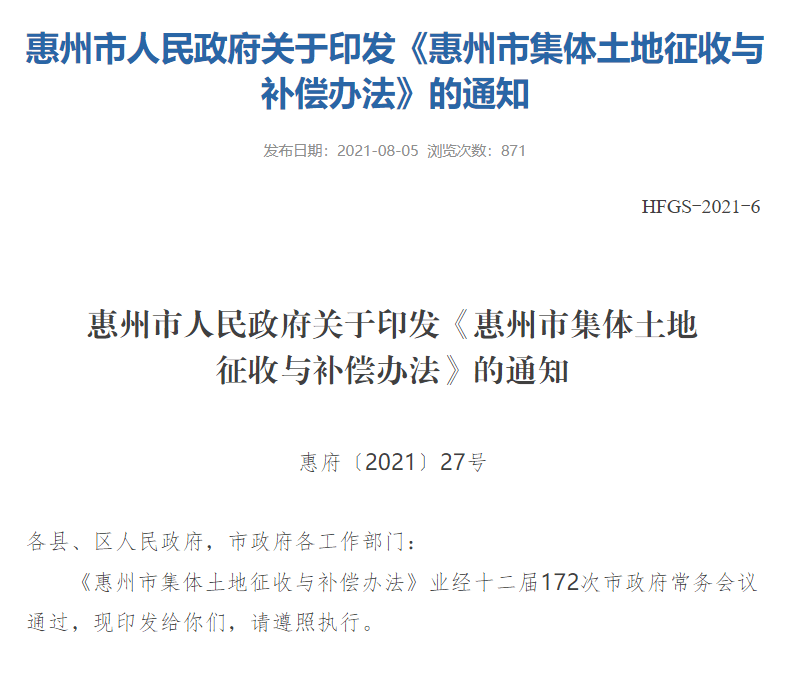 今年以来,惠州先是明确了征收实施农用地片区综合地价标准,厘清了不同地类间的争议,现在《办法》对征拆流程和村民宅基地、房屋等差补标准进行了精细的规定。