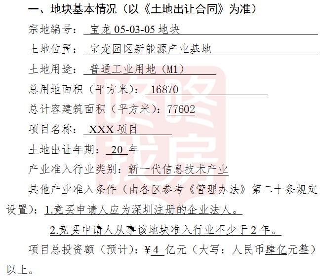 深圳年后首宗出让地块在龙岗!宝龙2月24日将出一宗工业地